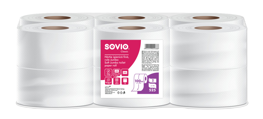 SOVIO toalettpapír 100 méter 18cm átmérő 2 rétegű 12tekercs/csomag 100% cellulóz